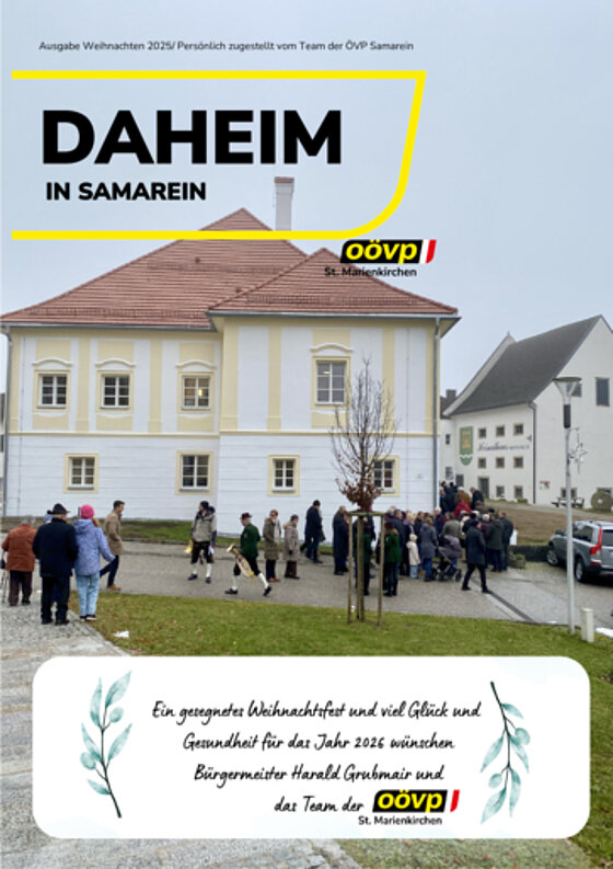 ÖVP St. Marienkirchen an der Polsenz erscheint drei Mal jährlich. Die Zeitung wird persönlich vom Team der ÖVP Samarein an jeden Haushalt zugestellt und enthält viel Wissenswertes über unseren schönen Ort.